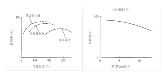 對催化劑性能影響較大的因素有反應(yīng)溫度、催化劑量、氨的注入量,如圖3所示。由于在250~450 ℃(**好是350~400 ℃) ,催化劑有**佳活性,通常脫硝反應(yīng)設(shè)定在這個(gè)溫度范圍內(nèi)。當(dāng)反應(yīng)溫度不在這個(gè)溫度范圍內(nèi)時(shí),催化劑的性能將降低,尤其是在高溫區(qū)域使用時(shí),由于過熱促使催化劑的表面被燒結(jié),使催化劑壽命降低。